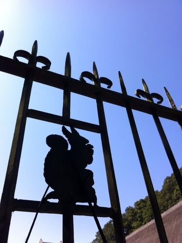 リスが家紋となっているお金持ちの家を見て回ったり。。。 こちら、大邸宅内の階段の手すりにも、個人所有教会の椅子の角っちょにもリスの堀細工が施され、、、 お土産として、リスのぬいぐるみが売られていた。 お日様の光で、こんなに色が違って見えるとは…
