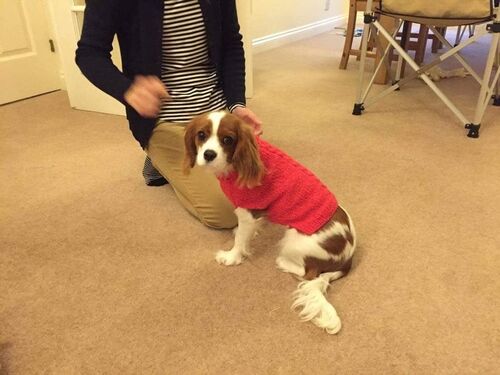 お犬様のママより嬉しい連絡! お犬様は嫌がることなく、、、、私の怪しい犬セーターを着てくれたと! キャーーーーー 可愛いじゃんーーーーーーーーーーーーーーーー 私のミューーーーーズ!!
